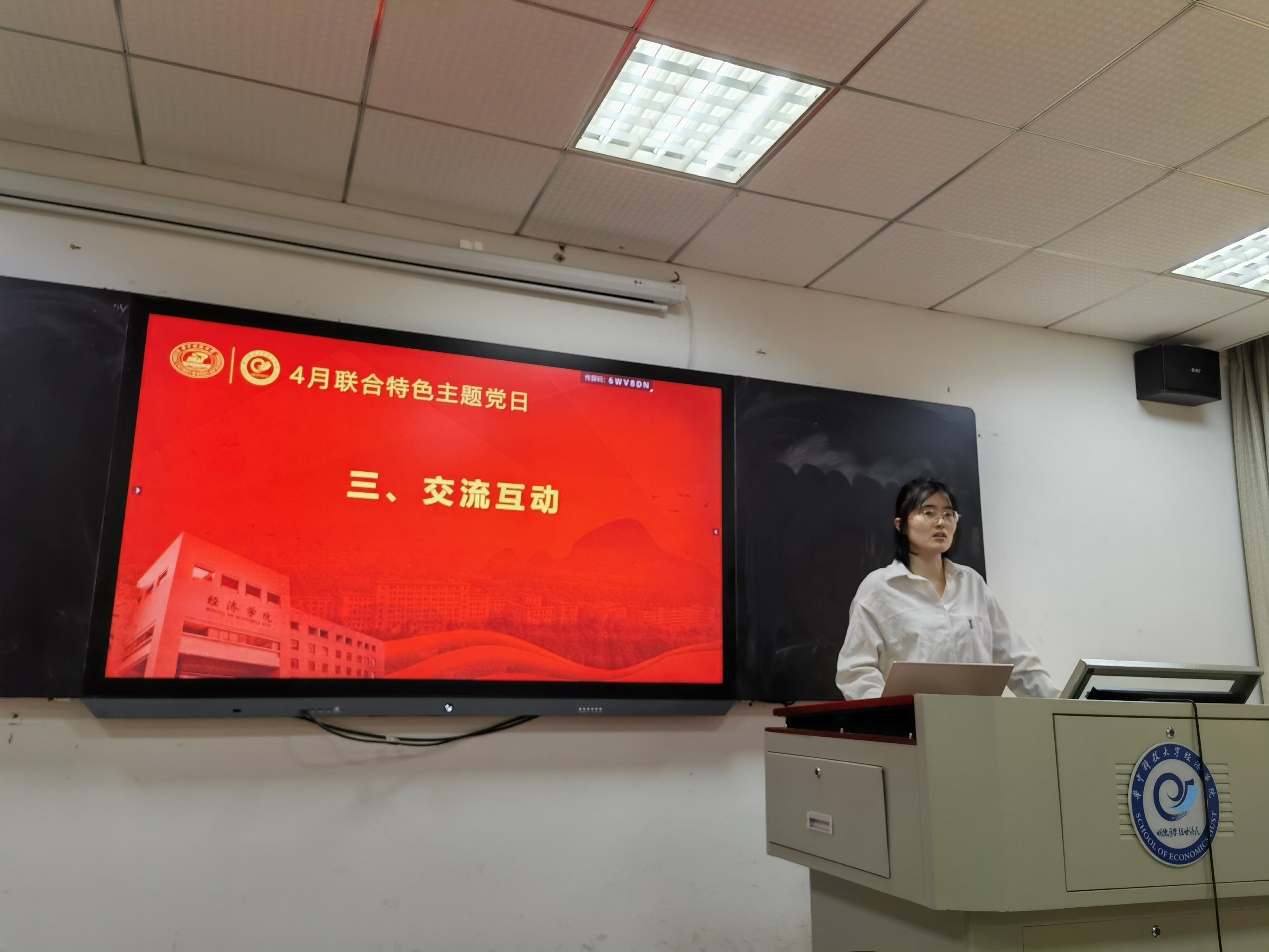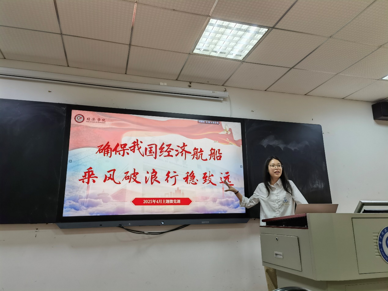 活动第二项,尹轩同志带领大家深入学习《确保我国经济航船乘风破浪、行稳致远》微党课。尹轩同志结合2025年政府工作报告,指出大力提振消费、提高投资效益、扩大国内需求对于促进经济繁荣发展的重要作用,降碳减污协同作用对于生态文明建设的重要推进作用。她分享了2024年9月“一行一局一会”宣布多项利好政策以及2025年4月2日以来贸易战对于股票市场的影响,鼓励党员在生活中更多关注时事、拓宽视野,将思想学习与实践运用相结合。