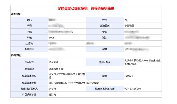 4、升学信息核对与就业信息核对类似,请根据调档函认真核对档案转寄信息和户口迁移地址,如果没有调档函,请与录取院校电话联系确定档案转寄信息和户口迁移地址。