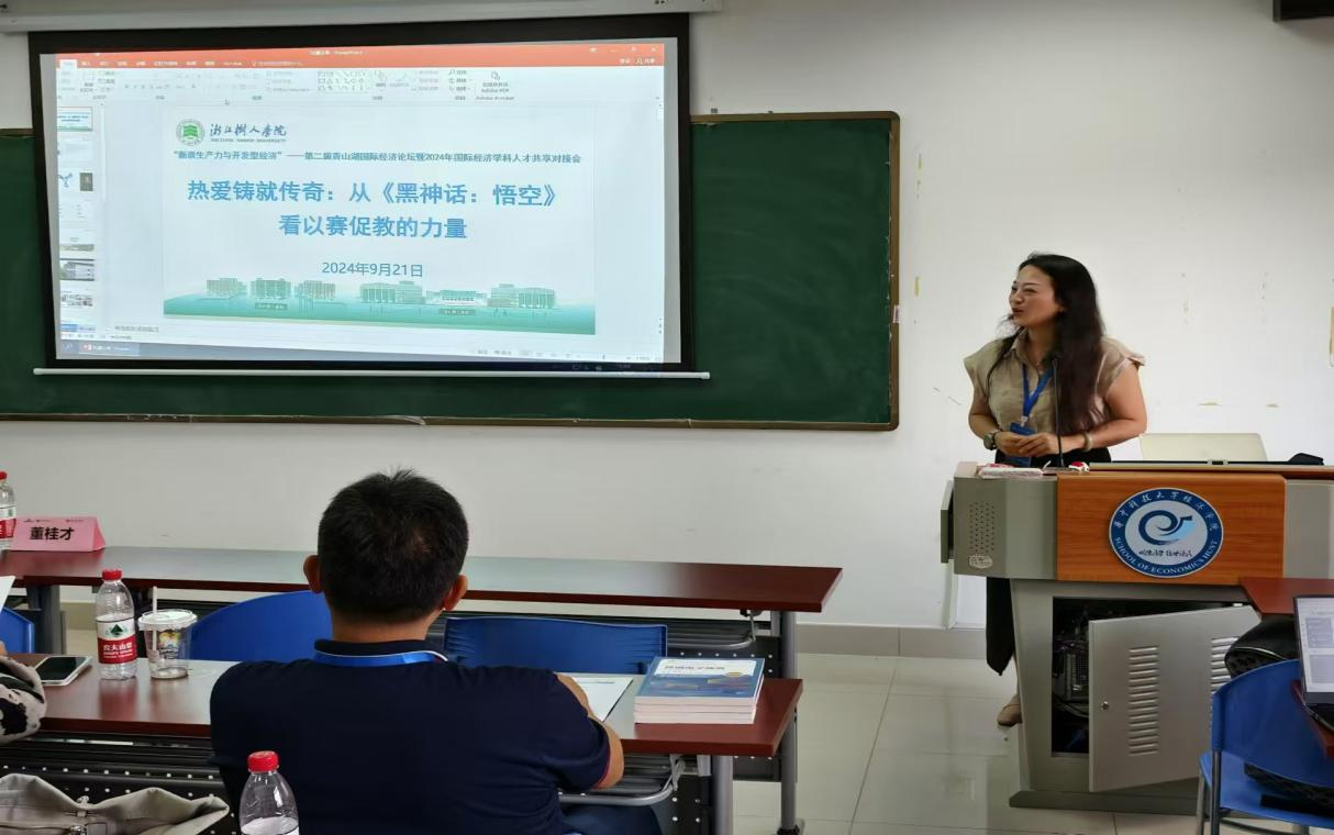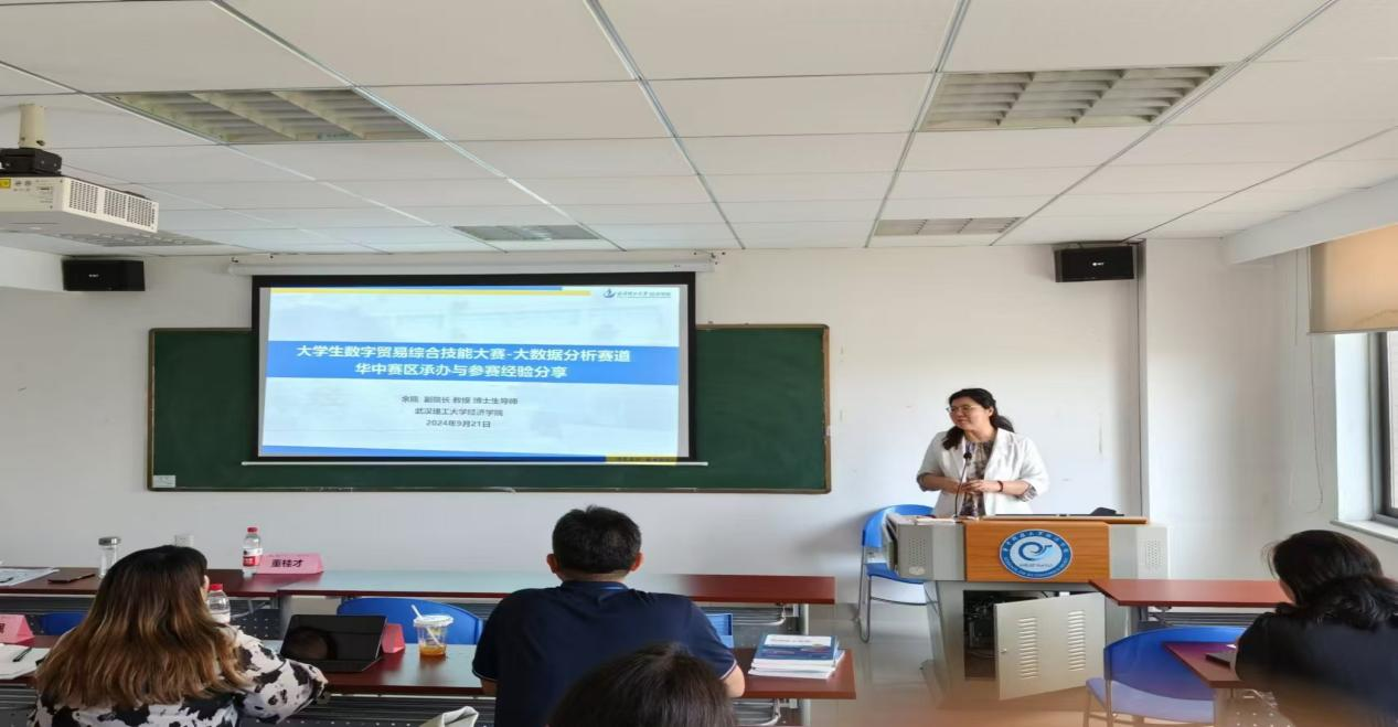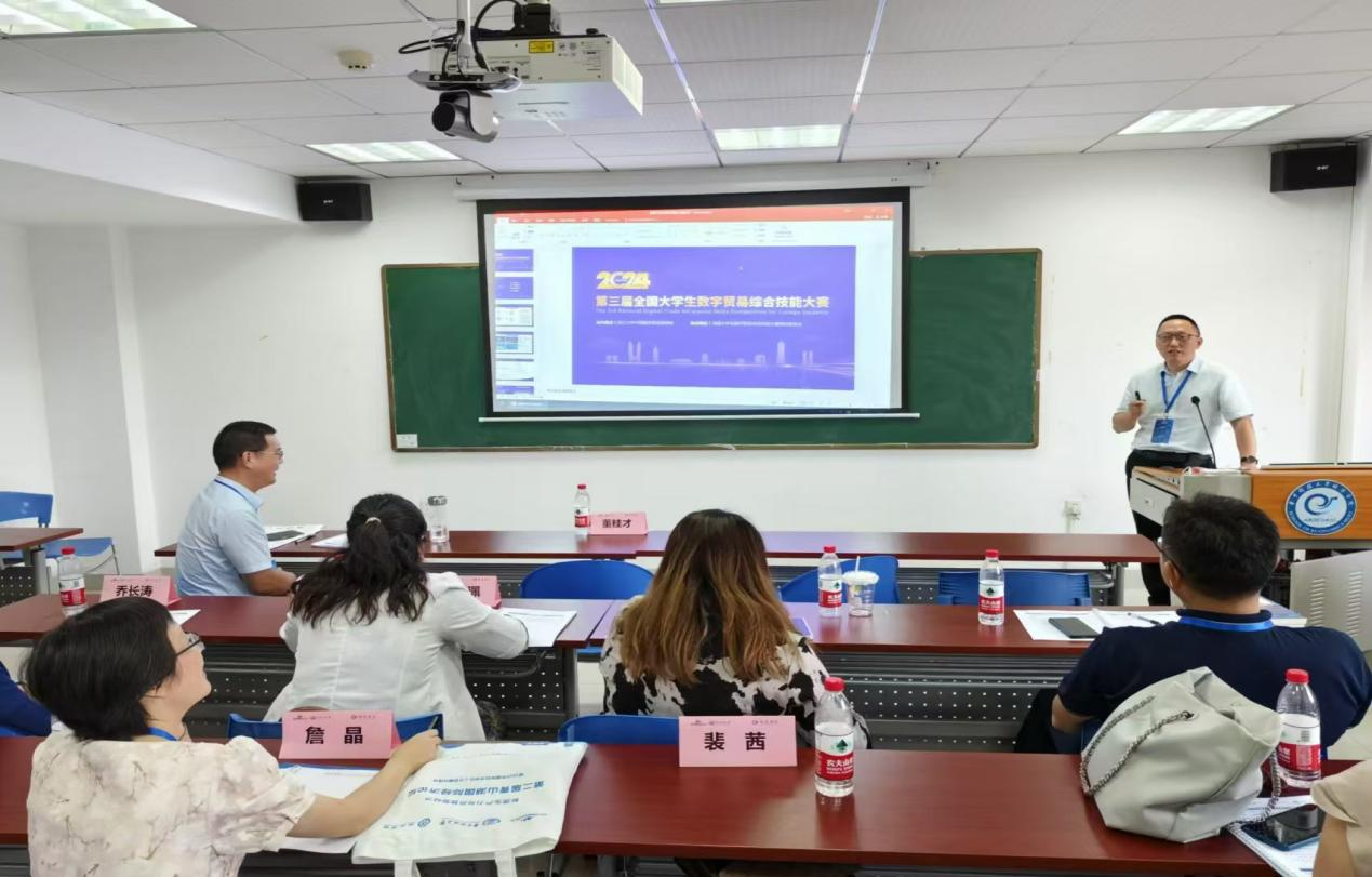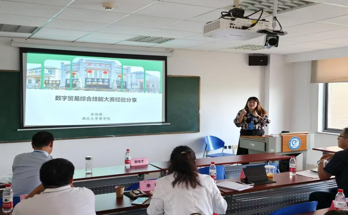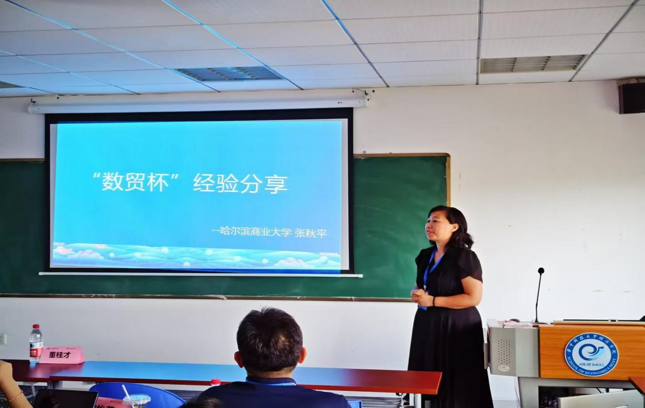 张秋平副教授以《数贸杯经验分享》展开演讲。她从深入研究,赛事宣讲,学生组队,选择题目,逐一指导,校内筛选,赛前彩排,共同协调几个方面展开经验交流。她强调了在赛事中,应当加强赛事宣传工作,引导学生参与,加强团队协作,注重学生安全,为大学生数字贸易综合能力大赛的开展提出了建议。