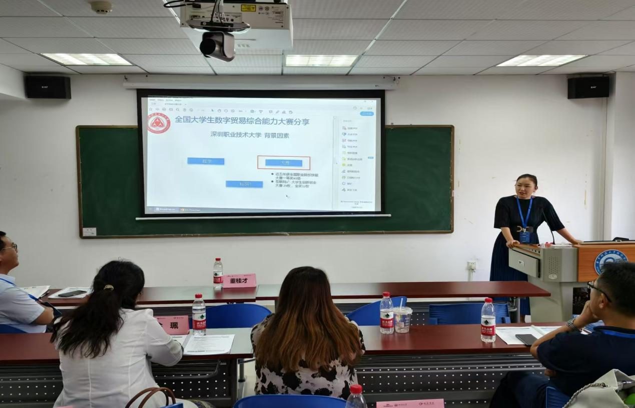 裴茜副教授以《全国大学生数字贸易综合能力大赛分享》为题,从选人,宣讲,集训,激励方面分享经验。她认为,在大赛举办中,学生应该增强执行力,指导教师可以加强监督,激发学生的自驱力,同时持续激励学生参与不同赛道的竞赛。