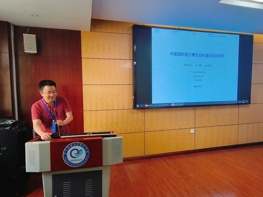 何欢浪教授以《中国国际进口博览会的溢出效应研究》为主题进行报告。他认为中国国际进口博览会是中国着眼于推动新一轮高水平对外开放作出的重大决策,是中国主动向世界开放市场的重大举措,体现了中国支持多边贸易体制、推动发展自由贸易的一贯立场。他的研究结论表明,进博会存在较大的进口溢出效应。相比于未参与进博会的国家,进博会显著提高了中国对参展国的进口,进口增加幅度达68%左右。进博会的溢出效应通过“四大平台”实现,即进博会起到国际采购、投资促进、人文交流和开放合作的作用。