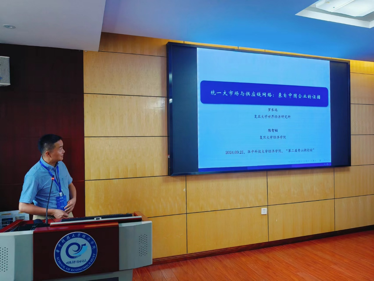 罗长远教授以《统一大市场与供应链网络》为主题进行报告。他通过构建理论模型和实证分析,利用中国企业的证据,探讨了统一大市场与供应链网络之间的关系及在中国环境下的启发。他指出这一研究为中国企业如何利用国内供应链网络优势,推动健康有序的国际化提供了政策启示。