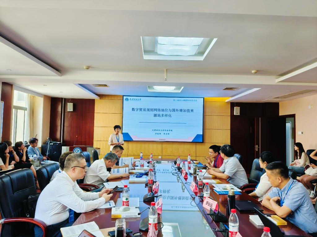 齐俊妍教授以《数字贸易规则网络中心度与国外增加值来源地多样化》为主题进行报告。她认为准确识别和评估一国嵌入RTA数字贸易规则网络的中心度,并分析其对全球价值链韧性的影响,对于价值链的风险治理以及制度型开放探索具有重要意义。于是她构建了RTA数字贸易规则网络的特征向量中心度指标,考察了RTA数字贸易规则网络中心度对以国外增加值来源地多元化表征的全球价值链韧性的影响。她的研究发现,一国RTA数字贸易规则网络中心度的提升有助于提高其国外增加值来源地多元化。