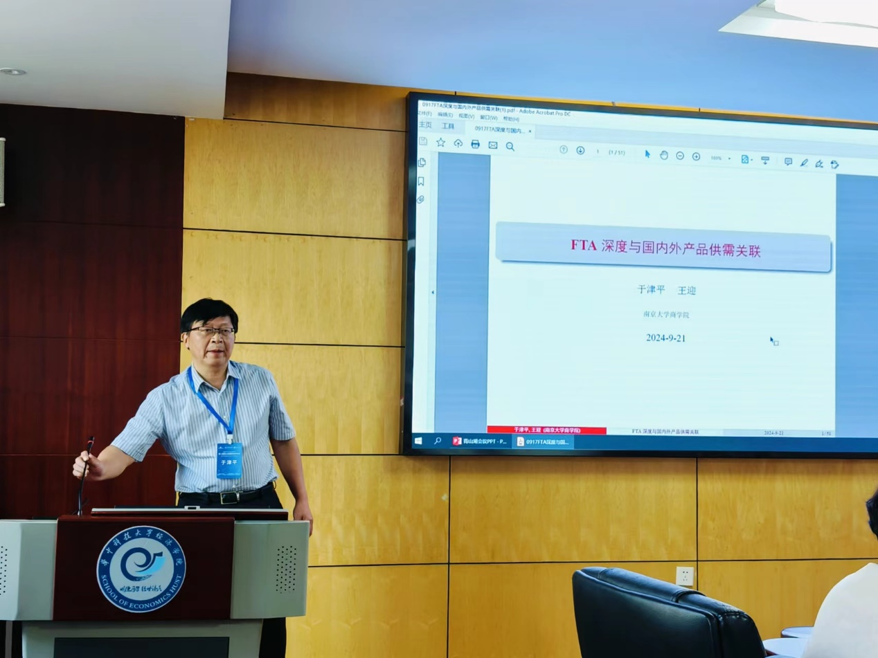 于津平教授以《FTA深度与国内外产品供需关联》为主题进行报告。他讲述了FTA 深度发展对全球供应链和需求产生的影响以及各国生产的供需关联因此产生的较大变化。他指出研究FTA 深度与供需关联的关系,对于确定贸易协定谈判对象与议题、实现双循环畅通发展具有重要意义。他利用OECD 投入产出数据库,实证检验了FTA深度发展对生产附加值来源结构的影响。研究结果显示,FTA 深度的提高一方面会抑制国内中间产品配套关联并增强最终产品需求关联,另一方面会提升跨国中间产品配套关联与最终产品需求关联。