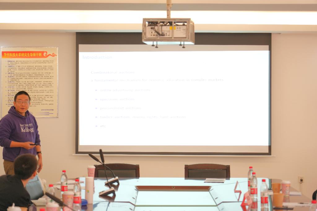 李江涛以《Rank - Guaranteed Auctions》为题进行报告,他的研究旨在设计一种组合式升价拍卖,通过最小合理性要求实现“近似”最优,并对策略和分配不确定性具有稳健性。他分享了组合拍卖设计的一个关键方面——菜单设计,并报告了通过实验,该拍卖方案可以取得较好的效果。