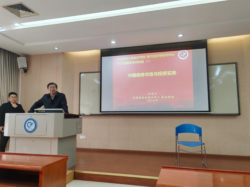 2025年1月2日下午,williamhill中文及现代经济学研究中心2025年第1期金融学系列讲座(总第8期)在williamhill中文106教室顺利举办。本次讲座由岚湖基金合伙人、基金经理苏尚才先生以《中国债券市场与投资实务》为主题的演讲。苏尚才先生结合多年在金融市场实战的经验结论,围绕中国债券市场的现状及债券投资的要点和策略展开演讲,众多硕士与博士研究生参与本次讲座。本次讲座由现代经济学研究中心主任欧阳红兵教授主持。