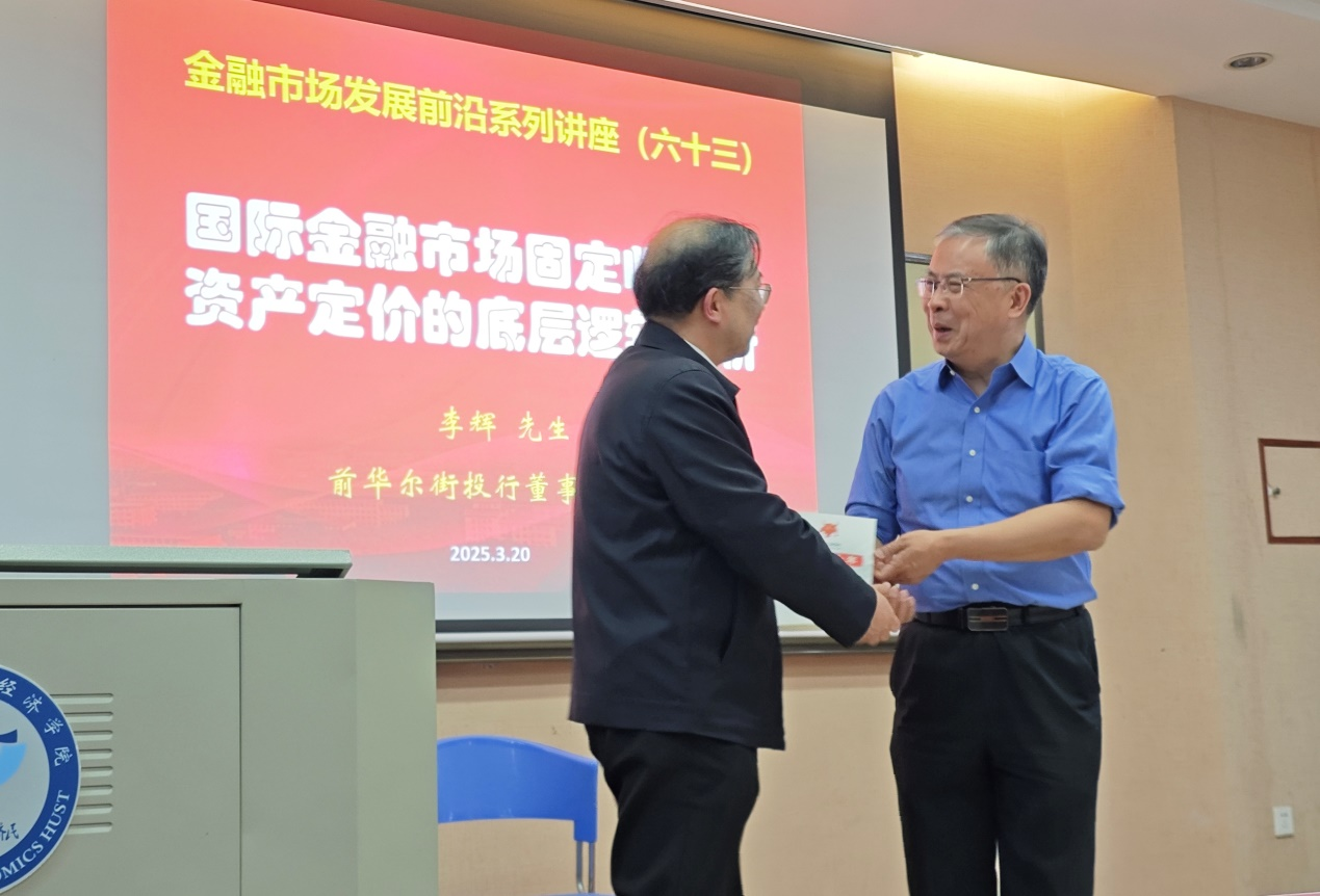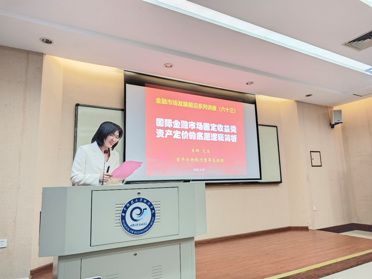 (通讯员:王媛琪 王倩倩)2025年3月20日18:30,金融市场发展前沿系列讲座(六十三)在williamhill中文106教室举办。本次讲座邀请了前华尔街投行董事总经理李辉进行分享。他结合多年在金融业和学术研究的经验结论,围绕国际金融市场固定收益类资产定价的底层逻辑展开主题演讲。本次讲座由williamhill中文沈淑琳副教授主持,威廉官网中国现代经济学研究中心主任、张培刚发展经济学基金会理事欧阳红兵教授点评。