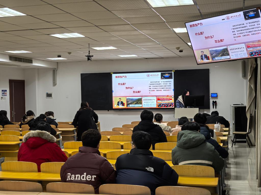 首先,由经世宣讲团王昱然同学为大家分享主题为《数字经济为新质生产力发展催“新”提“质”》的演讲,抛出三个问题供大家思考:什么是新质生产力、为什么要发展新质生产力、发展新质生产力怎么做,并给出了解答。其次围绕中国的发展优势,数字经济的规模效应、数字经济的应用-产业数字化等多个方面向我们介绍了什么是数字经济以及数字经济如何促进新质生产力发展。