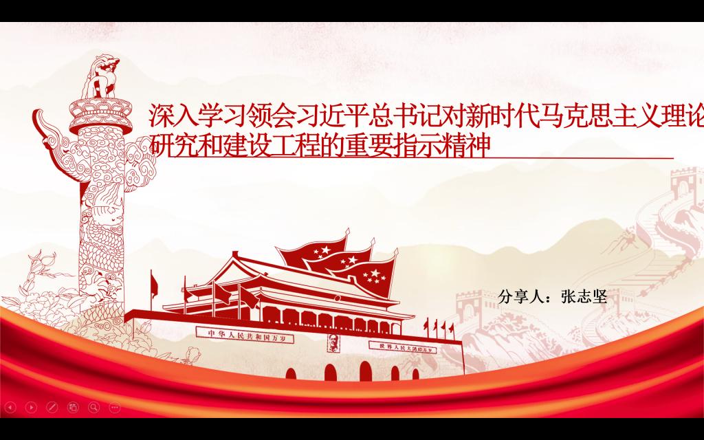 随后,张志坚同志带领支部成员学习领会习近平总书记对新时代马克思主义理论研究和建设工程的重要指示精神。习近平总书记强调,新时代新征程,要坚持守正创新,聚焦学习宣传贯彻新时代中国特色社会主义思想,着力深化体系化、学理化研究阐释,着力增强学习宣传的针对性、实效性,推动党的创新理论更加深入人心。要坚持“两个结合”,扎根中国大地、赓续中华文脉、厚植学术根基,深入研究以中国式现代化全面推进强国建设、民族复兴伟业实践中的重大问题,加快构建中国哲学社会科学自主知识体系,培养高素质理论人才,为推进马克思主义中国化时代化作出更大贡献。
