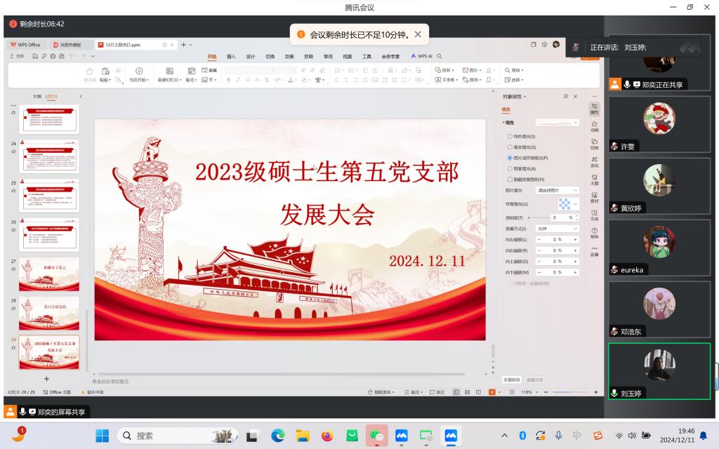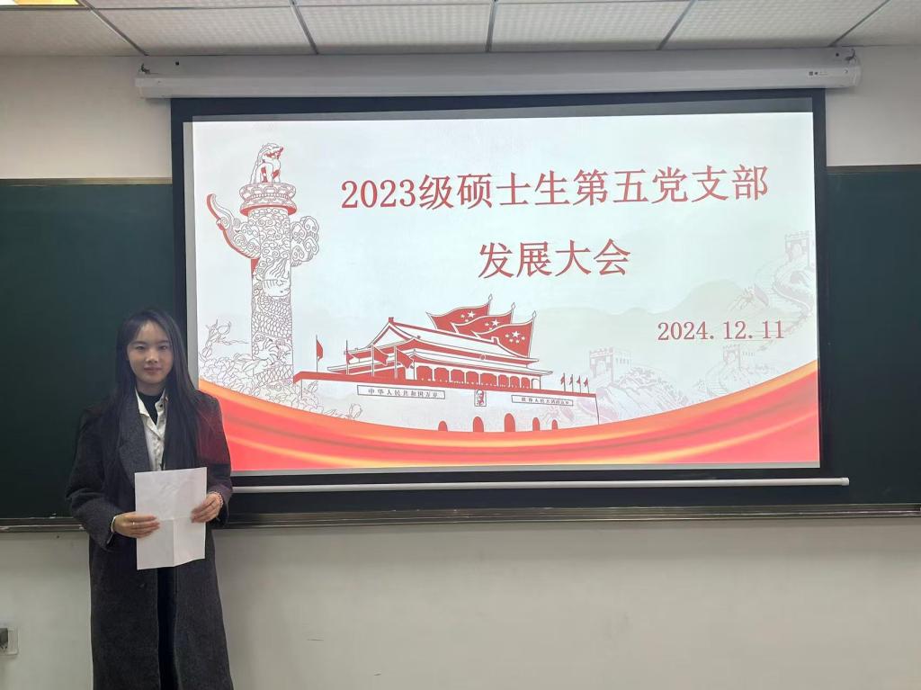 为深入学习领会习近平总书记在湖北考察时的重要讲话精神、深入学习领会习近平总书记对新时代马克思主义理论研究和建设工程的重要指示精神,12月11日晚上,2023级硕士生国商专硕党支部于williamhill中文209教室开展12月主题党日暨发展大会。会议由党支部书记郑奕主持,支部全体党员与积极分子以线上线下结合的方式参与会议。