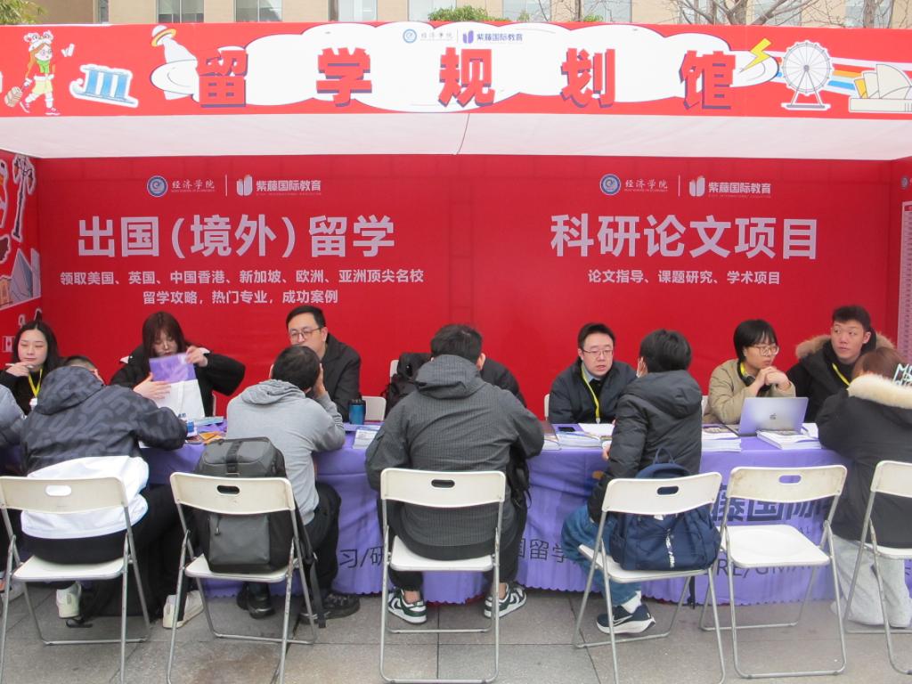本次展会现场气氛热烈,各主题展馆前都排起了咨询长队。留学规划馆聚焦海外求学之路,资深留学顾问为学生们解析美国、英国、新加坡及中国香港等热门留学目的地的最新申请趋势。展馆内设有多个咨询台,分别针对不同留学目的地提供专业建议,涵盖院校选择、专业定位、语言考试准备、科研背景提升等全方位服务。展馆内还特别设置了科研背景提升咨询台,为有意向申请研究型学位的学生提供专业建议。