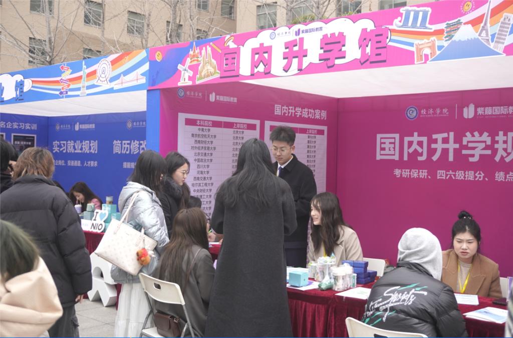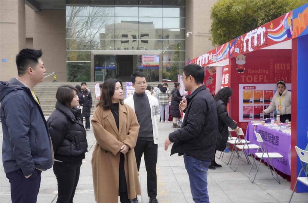 上午10时,各展厅前人头攒动,同学们在保研、考研、留学、就业实习等展馆区域积极咨询,刘雯雯、周丹和李鸿鹏到场了解活动的展开工作,并与现场师生亲切交流,她们对此次活动的举办给予充分肯定,希望通过“一站式”生涯规划体验活动,增进同学们对于个人职业生涯发展的了解,提升就业竞争能力。
