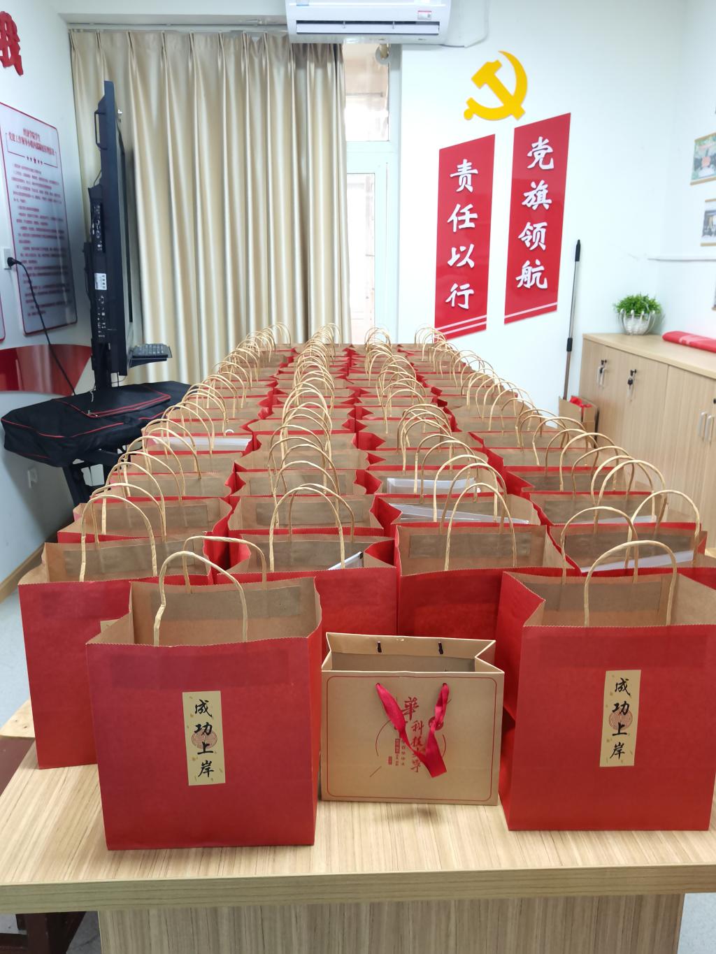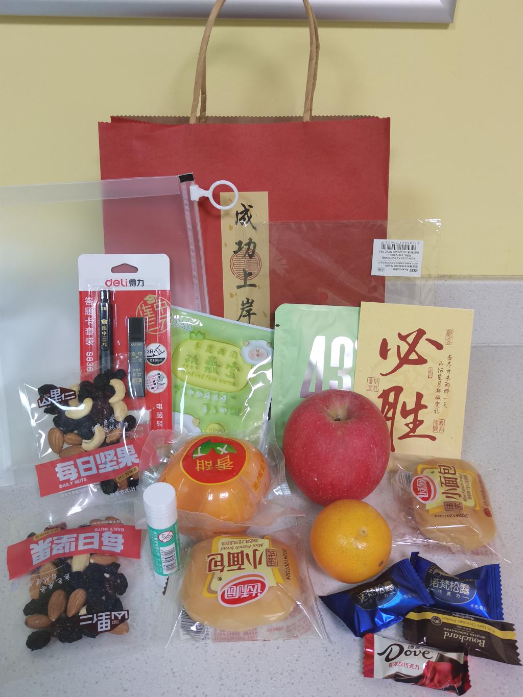 座谈会后,学院领导、辅导员、毕委会同学们一起带上考研大礼包,轻轻敲开了考研同学的寝室,逐一赠送完了所有的大礼包。亲爱的考研同学,请看,你不是在孤军奋战,你的身后,学院在为你摇旗呐喊。