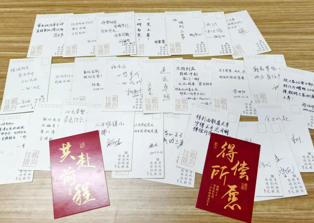 加油贺卡:纸短情长,学院的领导、老师和同学写在明信片上的铿锵字句,激励着考研人一往无前