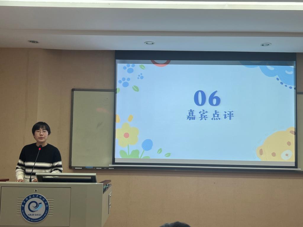 选手展示结束后,甘圆圆老师对本次大赛做出综合点评和总结,对选手的专业技能、自我认知以及对未来职业发展生涯的思考和规划给予充分肯定,鼓励同学们结合学校与学院资源,深入探索专业与职业目标的结合,探索职业匹配,关注岗位胜任力,不断实现自我认知与发展。