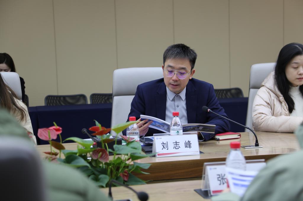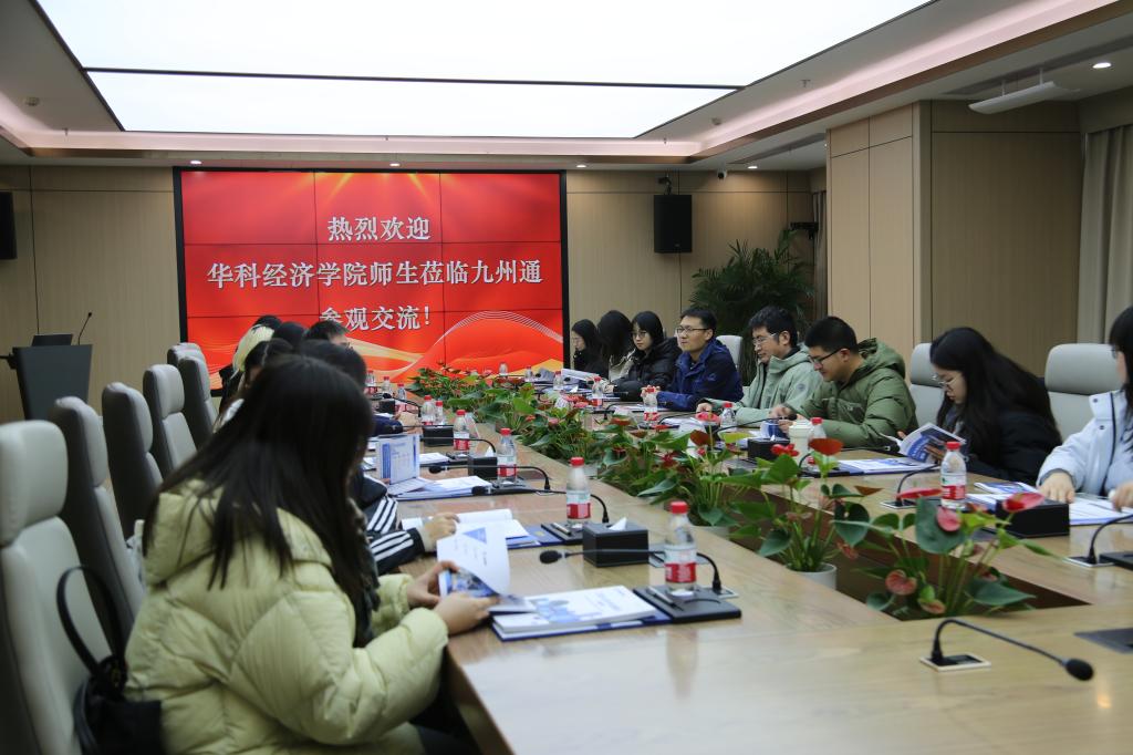 随后,刘志峰邀请师生们到会议室进一步交流互动。张学功肯定了集团在环境、社会和治理(ESG)方面的优秀表现,并深入分析了家族企业的传承问题。他以九州通为例,探讨了该企业如何成功地从家族式管理转型为职业经理人管理模式。刘志峰介绍了他负责的部门的具体工作内容,他特别强调了集团正在积极推进的数字互联平台项目,该项目通过实施“三化”策略,旨在优化业务流程和改进企业的人才培养模式。彭鹤翔提出了与集团进一步深入合作的可能性,包括设立奖学金、建立实习基地等。马立君则就同学们适合的实习项目和所需技能进行了深入讨论。此外,同学们还就“如何将金融知识应用于医药流通企业”以及“实习实践”等话题,展开了热烈的提问和交流。