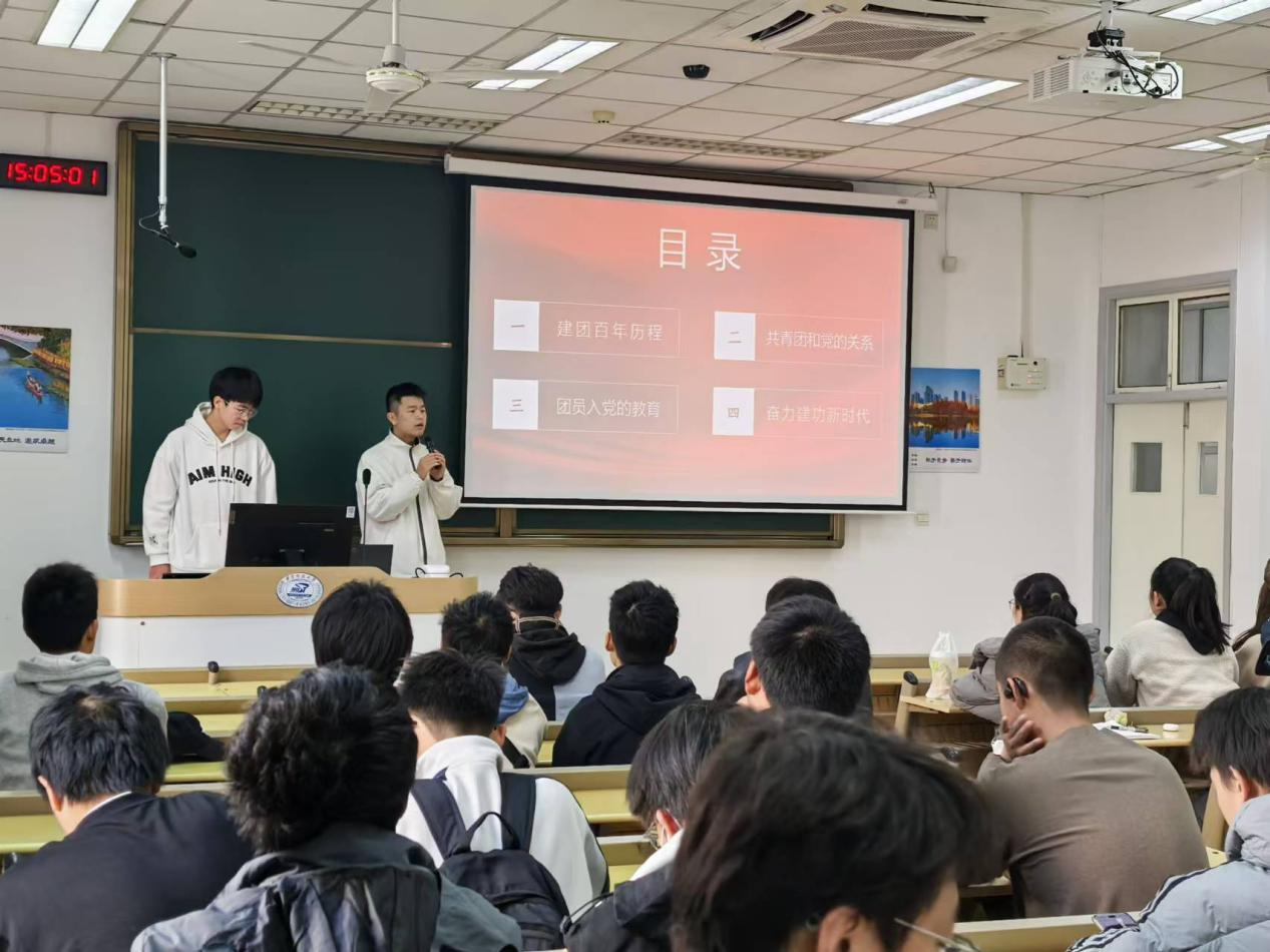 光电2405班团支书许晨欢向大家介绍了共青团与共产党的血脉联系,共青团是共产党更好地联系青年群体的重要组织,接受党的政治引领,为党培育青年人才,同时也展开了有关的团员入党教育,通过视频等多样化的形式,明确了成为一名优秀党员的标准与使命,指明了未来发展的方向,从共青团员到共产党员,不变的是那红色的信仰,永远为人民服务。