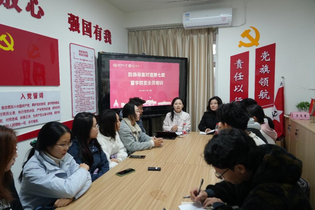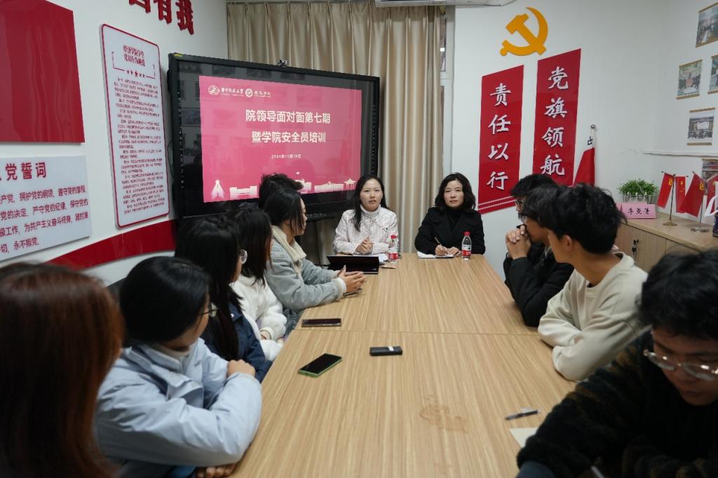 接下来,刘雯雯与安全网格员们展开了进一步的交流。她认为安全网格员是学院的“神经末梢”,强调了安全网格员在同学们日常学习生活中的联络职责和作用。她希望能打通信息沟通渠道,建设学院安全工作的社区阵地,她特别强调党员安全员需时刻履行“有困难找党员”的承诺,通过党员接待日、党员进寝室、座谈会等形式,进一步发挥党员的先锋模范作用,与同学们保持更多的联系互动,保障每一位同学的安全,助力经院学子成长成才。
