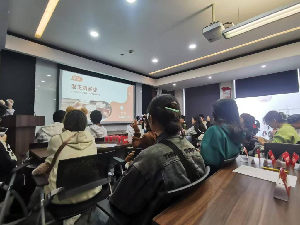 接着,同学们以分组的形式开展了“老王奶茶店”上市的金融实训活动。在这次活动中,同学们纷纷化身董事长“老王”,运用所学的货币金融学、证券投资学等课程知识,深入模拟并探讨了奶茶公司在多个方面的决策,包括是否通过银行进行直接融资、是侧重研发还是侧重市场营销、是否需要更改公司名称、是否选择上市以及上市后如何进行权益投资等。在这次活动中,同学们展现了良好的团队协作精神,积极进行交流讨论,从而对企业的融资途径和投资策略有了更加深刻的理解和认识。