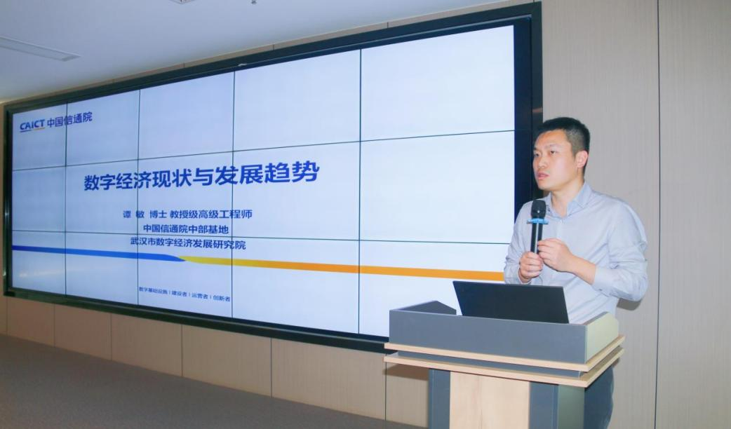 随后,谭敏围绕“数字经济现状和发展趋势”这一主题开展专题讲座。他指出数字经济正成为经济社会发展的主导力量,中国信通院提出的数字经济四化框架——数字产业化、产业数字化、数据价值化和数字化治理,突显了数字技术在提升经济生产力和社会变革中的关键作用。