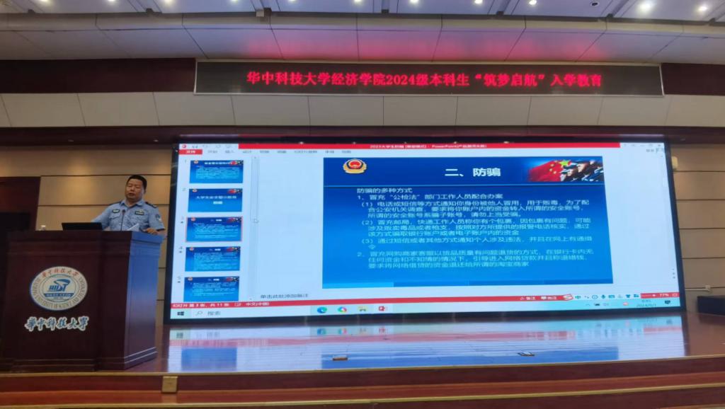 9月1日上午,学院邀请喻家山派出所熊家伟警官为新生们作防骗安全警示讲座。熊警官结合生动案例,面向新生开展防诈骗教育、交通安全警示教育等内容,旨在帮助新生了解各种常见的诈骗手段和骗术,并提供了一些实用的防范策略和技巧,促进他们了解保护个人信息的重要性,增强自我保护意识和能力。