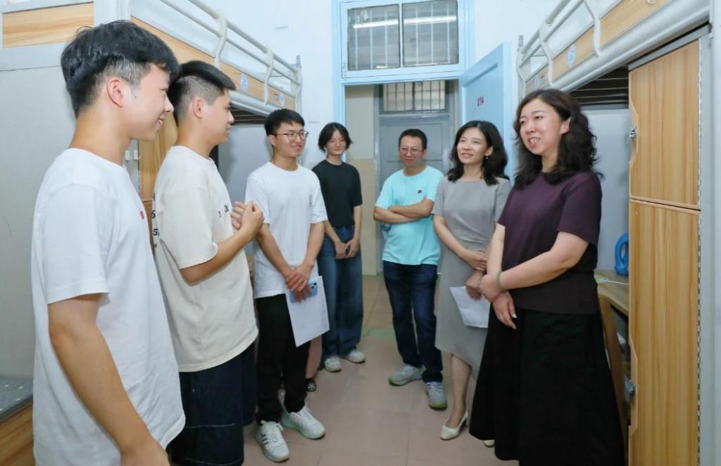 8月31日,学院党委书记刘雅然、党委副书记刘雯雯、2024级新生教师班主任、研究生班主任与全体辅导员进入新生寝室看望新生及家长,关心学生入学适应情况。