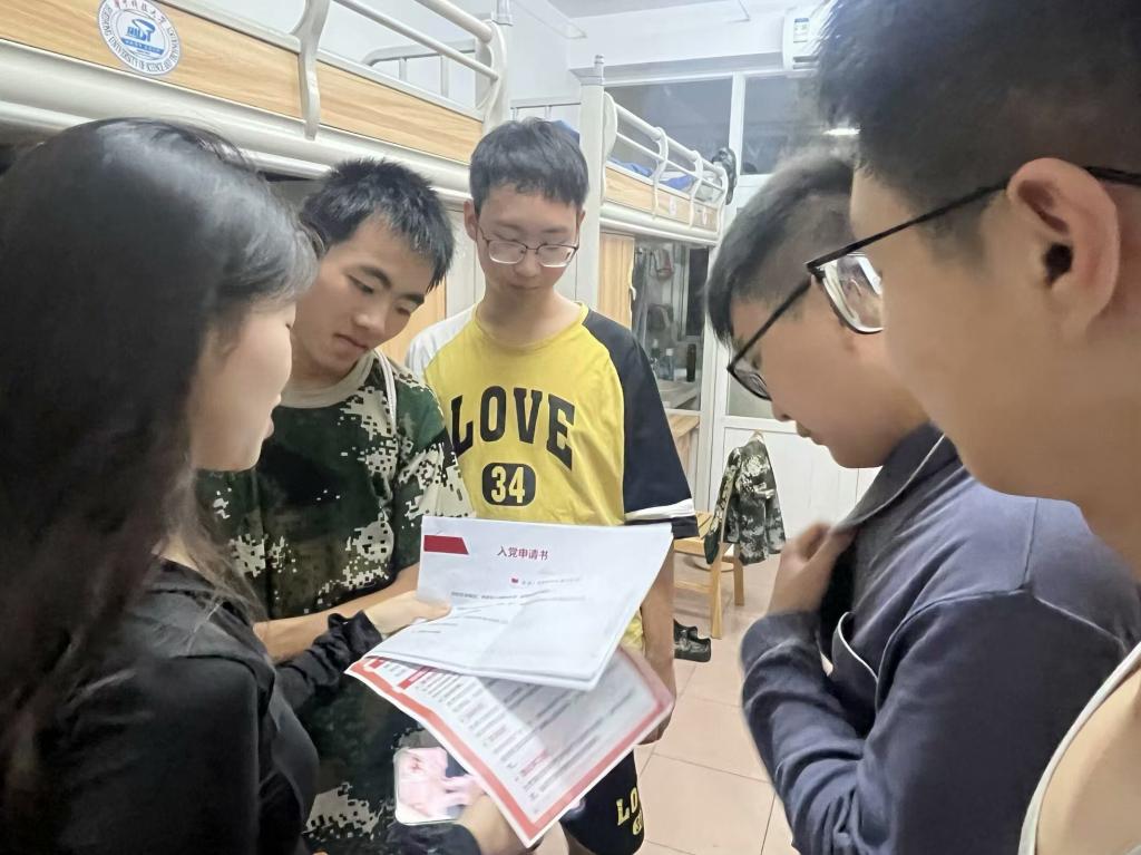 学院充分利用好学生社区、宿舍等思政教育阵地,组织“党员进寝室”活动。9月5日,24级本科生辅导员曾雨龙深入学生社区,本科生党建工作中心学生骨干走进学生宿舍,共同开展“早日站在党旗下”教育活动,向大一新生分享入党知识,讲解入党流程,鼓励新生以党员的高标准自我砥砺,早日融入党的温暖怀抱,让青春在党旗下绽放更加夺目的光彩。