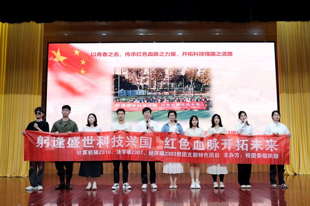 计算机硕2310、法学硕2307、经济硕2303班团支部以“躬逢盛世科技兴国,红色血脉开拓未来”为主题,立足专业特色,在活动中厚植家国情怀,贡献青春力量。联合团支部开展红歌合唱、党史学习研讨会,筑牢信仰之基,明确新时代青年的历史使命;寒假期间组织“重走红色足迹,传承革命精神”冬日暖阳活动,团支部成员分别前往家乡红色景点实践学习,重温红色历史,感悟革命精神的内涵;充分发挥专业优势,深入社区开展反诈普法宣传,深入校园提供电子产品修理维护服务,深入企业感悟金融科技高质量发展。在答辩现场,联合团支部以走秀的形式展现了同学们极高的热情和参与度,并将反诈情景剧搬上舞台,为现场观众们带来别具一格的反诈宣传教育。