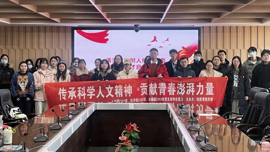 人文硕2301、经济硕2302、机硕2303班团支部以“传承科学人文精神,贡献青春澎湃力量”为主题,围绕朱九思、张培刚、杨叔子等先辈的事迹和精神展开活动。联合团支部组织参观校史馆、院史馆和张培刚先生故居,与先辈进行跨时空对话;通过人物访谈和问卷调研,进一步增进对先辈精神的理解;开展人物事迹学习、读书分享会,以点带面引领大家共同领略科学人文精神的魅力;带领同学们进支部、进校园、进社区、进企业,进行宣讲和实践,将榜样精神转化为实践报国、科技强国的澎湃力量。在答辩会现场,联合团支部以情景表演的形式再现了丰富多彩的活动内容,并将先辈们的名言警句融入诗朗诵,呈现出一堂精彩生动的精神宣讲课。