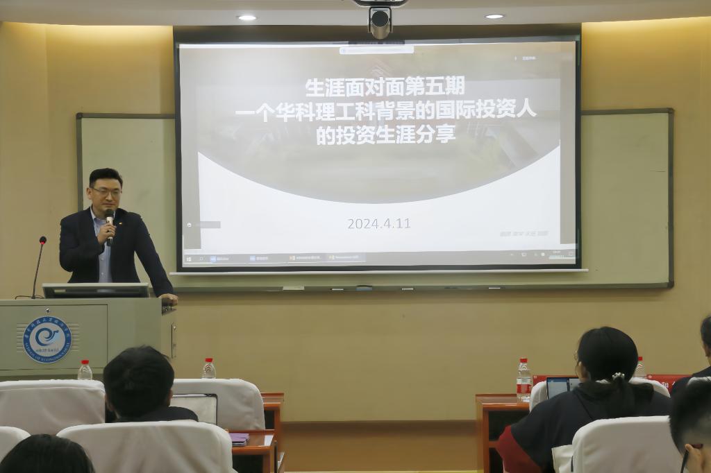 本网讯(通讯员:徐琛 孙棵)4月11日下午,williamhill中文第五期“生涯面对面”活动在学院106教室顺利举办。本次活动特邀瑞江投资管理(武汉)有限公司创始人及董事长赵进强先生,他以“一个华科理工科背景的国际投资人的投资生涯分享”为主题为师生们带来了一场精彩的主题讲座。学院党委副书记刘雯雯、金融系教授欧阳红兵参与会议。