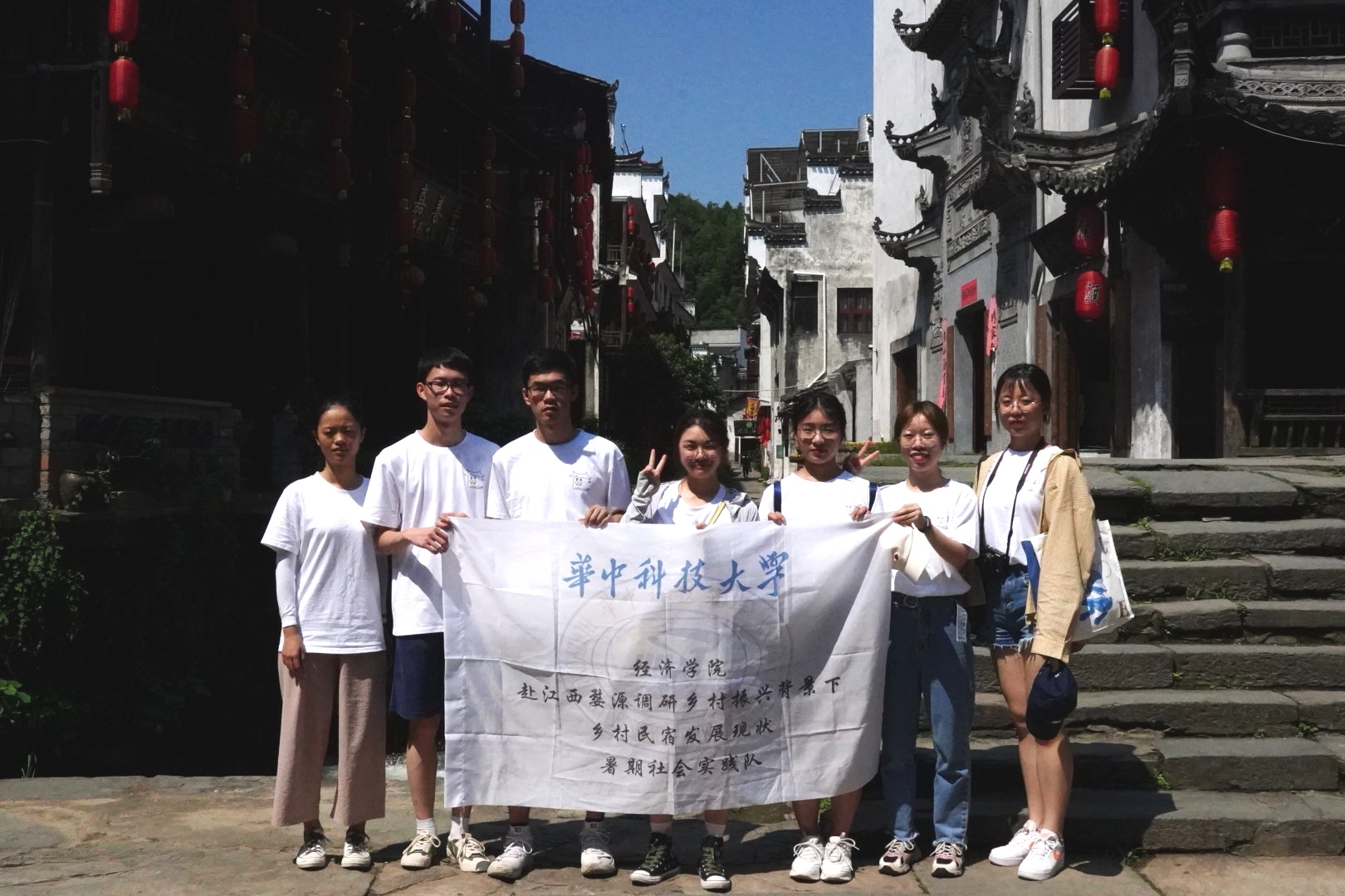 7月6日早,全体成员集合完毕,前往李坑、汪口、江湾三个景区对游客进行采访,以了解前往婺源旅游的游客群体的定位与需求。7月6日晚,实践队前往篁岭景区附近的农家乐式民宿和时尚型民宿进行采访,获悉旅游业发展对民宿的拉动作用等信息。