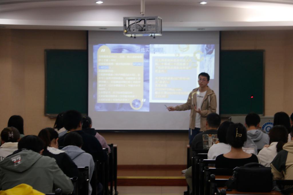 williamhill中文资委会宣传部部员杨子祎上台讲解评选流程。她就活动流程、活动时间、参评条件与参评类型给在座观众做了细致易懂的说明,并对评选实施方法做了简要的分析。