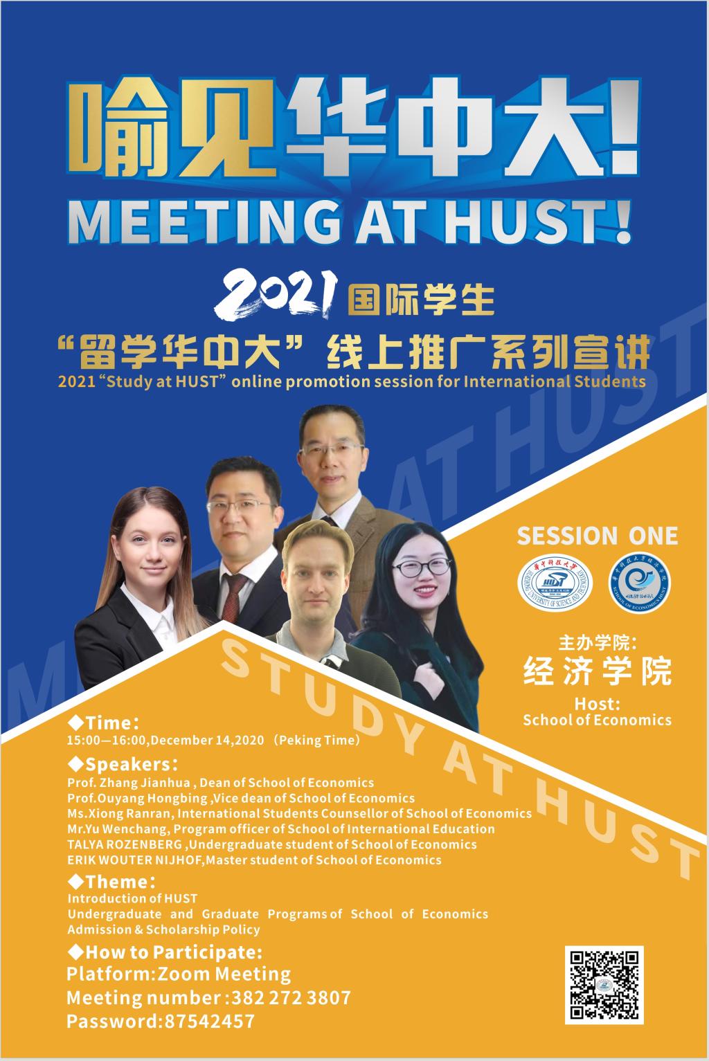 12月16日下午,2021国际学生“留学华中大”线上推广系列宣讲经济院专场顺利举行。williamhill中文院长张建华教授、副院长欧阳红兵教授致欢迎辞,国际学生辅导员熊苒苒宣讲活动。本次活动由国际教育学院招生与对外合作办公室高级项目主管艾霄主持。