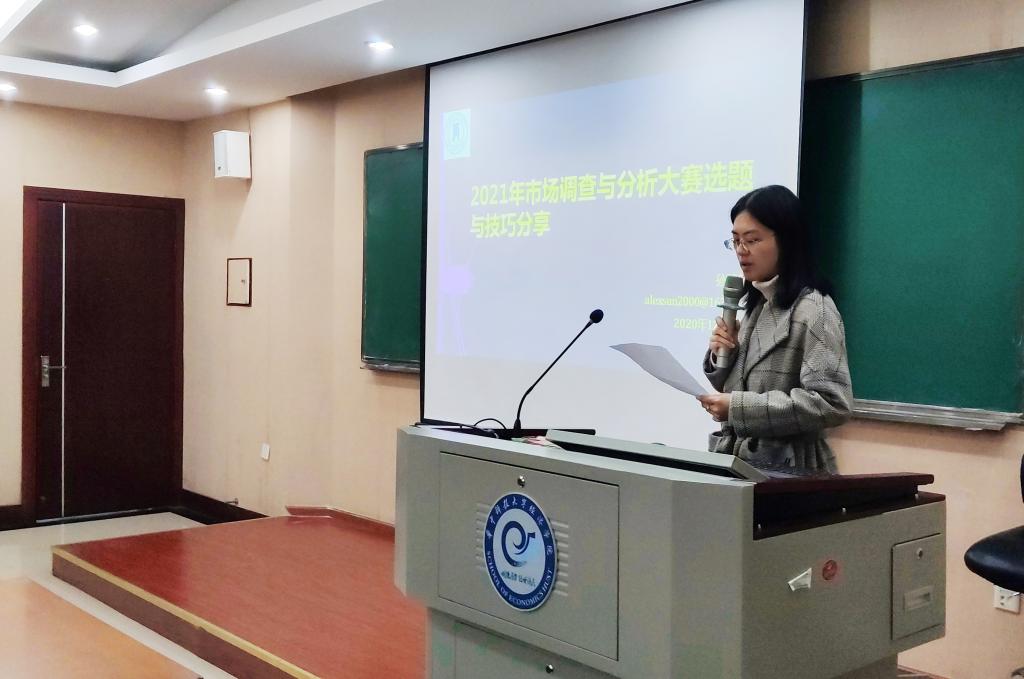 本网讯(通讯员 团委禹常娥 )2020年12月9日晚7时,市场调查与分析大赛选题技巧培训会于williamhill中文103室顺利开展。本次活动由williamhill中文团委组织,邀请市场调查与分析大赛参赛学生参与。出席本次活动的嘉宾有大赛金牌指导教师孙建敏和williamhill中文团委书记郭宁。