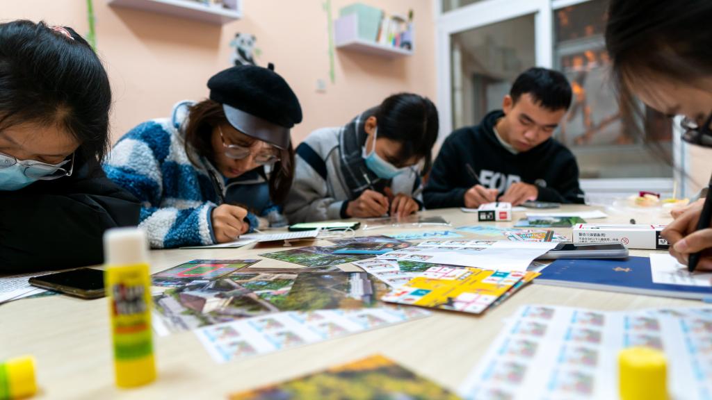 活动伊始,负责人袁晓钰为大家展示了提前准备的华中大原创明信片,以及笔、邮票、胶水等必备物品。心理服务部的部员耐心地为参与活动的同学讲解明信片的具体要求并做示范。随着时间的推移,不断有同学加入到活动中来。同学们在轻松悠扬的音乐中将思念凝于笔尖,用墨香书写牵挂,或是闲谈日常生活的小片段,或是含泪叙写对许久未见的父母的思念。一张张明信片由空白到布满文字,回忆的天窗悄然打开,温暖萦绕在心语室之中。晚8时,活动接近尾声,工作人员小心地整理好寄托着同学们思念与祝福的明信片,待活动后统一寄出。