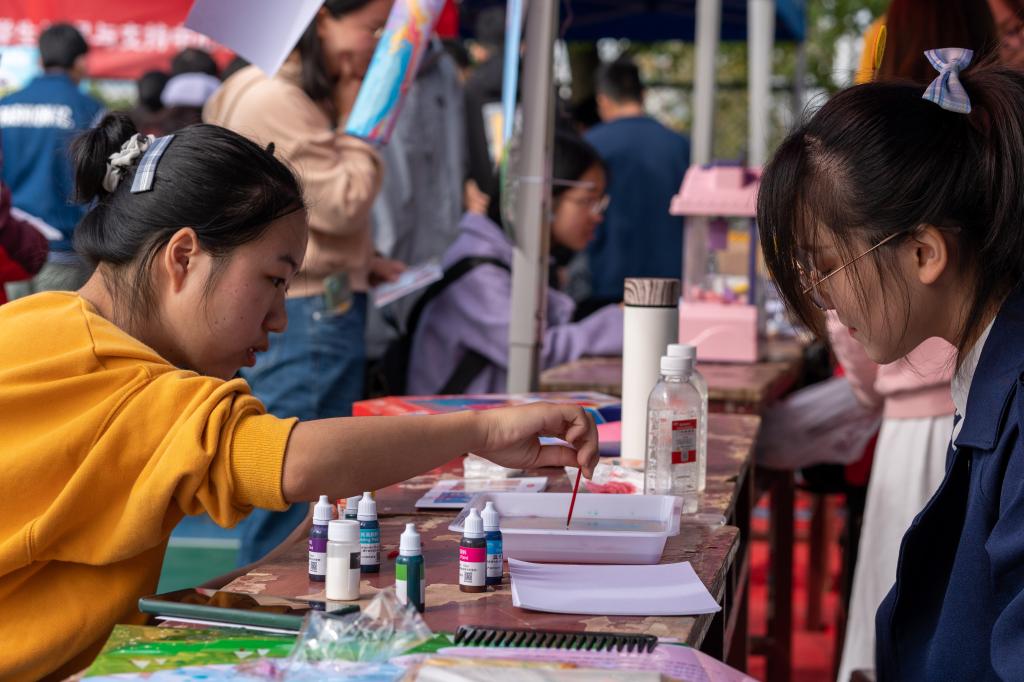 活动分为游戏和领奖两个环节。游戏环节中,夹娃娃机活动,让同学们在重拾儿时轻松心态的同时,发掘自身的快乐能量,在这个凉爽的秋季,心中也能保有一份温暖;水拓画活动,让同学们像孩童时期一样“肆无忌惮”地发挥自己的想象力,享受到心灵的宁静;头顶书与拯救企鹅这两个两人竞技活动,让同学们的学习压力、生活压力以及离家在外的不适感烟消云散,在趣味中收获喜悦和友谊。紧接着的是领奖环节,根据参与者参与项目的数量和参与结果,分为惊喜奖和参与奖。惊喜奖为小娃娃或者小扭蛋,参与奖为大学生发展研究与指导中心提供的本子和签字笔。在欢声笑语中,同学们满载而归。