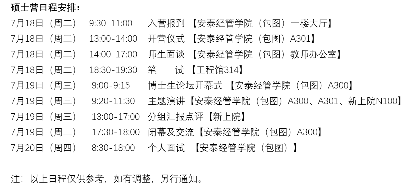 安泰是6.30发的入营通知,具体日程安排如下,除了基础的笔面试还包括一天的博士生论坛。