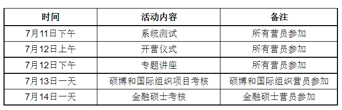 上财经院夏令营5月下旬出通知,6月下旬截止申请,截止时间相对较晚。今年上财经院和人大经院硕博入营通知出的都很晚,都是在7月初公布入营名单。上财经院今年的夏令营时间安排如下:
