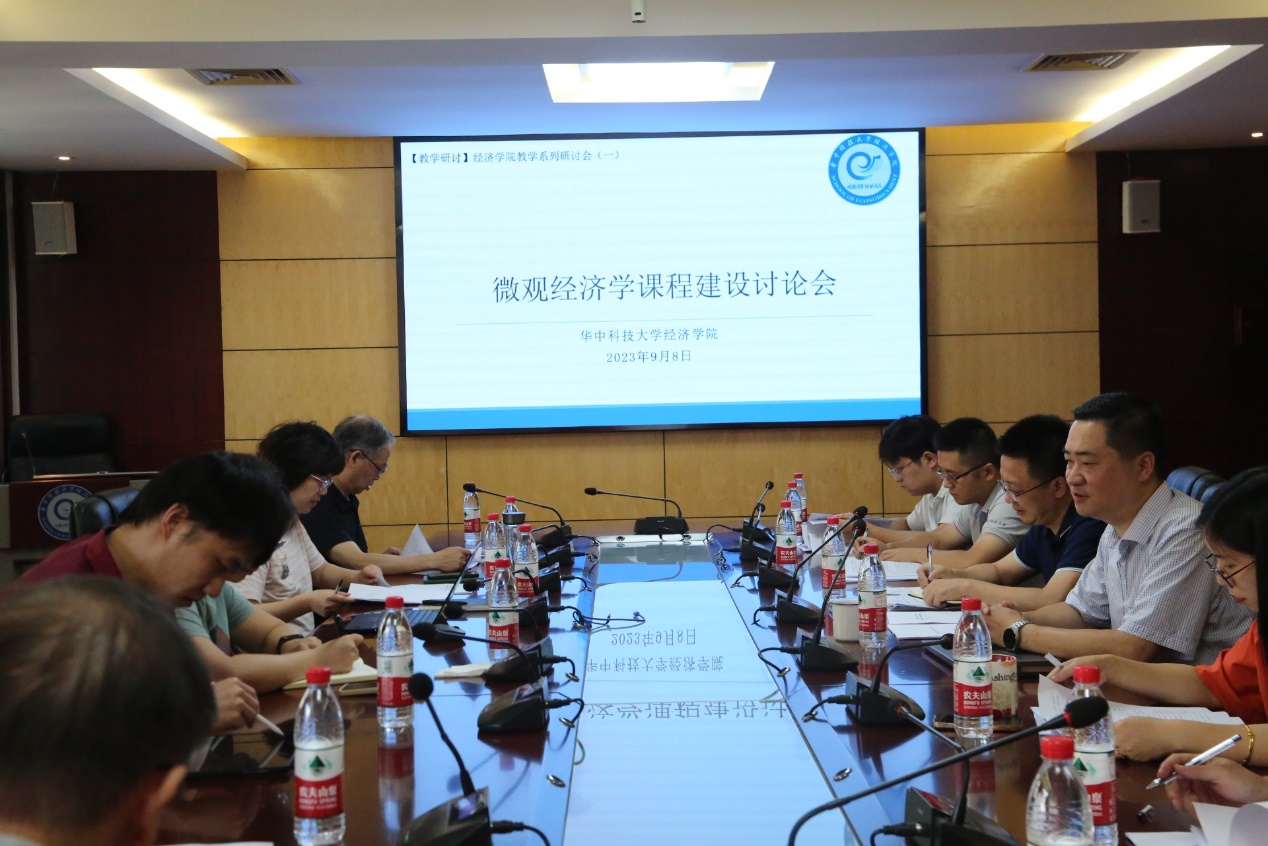 本网讯(通讯员:马文丽)9月8日下午,为深入探索经济学课程思政的新模式,提升学院《微观经济学》的教育教学质量,williamhill中文教学系列研讨会(一)——微观经济学课程建设讨论会在学院307会议室举行。学院党委书记戴则健,副院长钱雪松,院长助理谭帅群,经济系主任陈斌、副主任易鸣,教师张卫东、彭代彦、龙妍、叶巾祁、孙雅、杜立、裴挺,金融系副主任魏杰、国贸系教师李明阳和本科教务科科长李军参与会议。会议由副院长钱雪松主持。