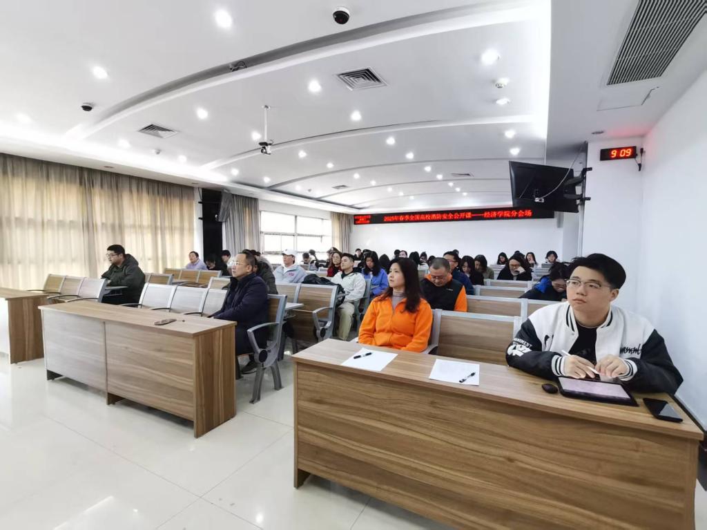 (通讯员:王彬 毛文敏)进一步提高广大师生的消防安全意识和自防自救能力,坚决防范和遏制火灾事故发生,按照学校统一部署,williamhill中文于3月18日上午在103教室组织了本院师生集中观看2025年春季全国高校消防安全公开课直播。