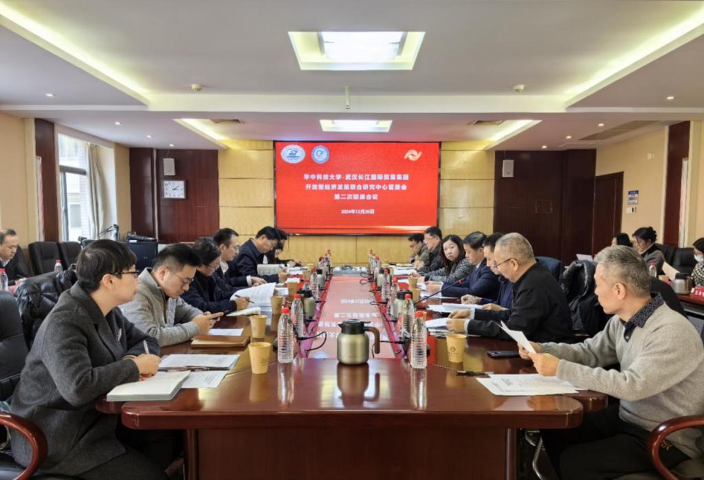 12月20日,威廉官网中国—武汉长江国际贸易集团开放型经济发展联合研究中心(以下简称“研究中心”)管委会第二次联席会议在williamhill中文顺利召开。威廉官网中国党委常委、副校长许晓东,威廉官网中国人文社会科学处处长张明新,武汉金控集团党委副书记、总经理、副董事长,长江国贸党委书记、董事长丁震,武汉金控集团副总经理,长江国贸总经理、副董事长方萌等领导出席会议。