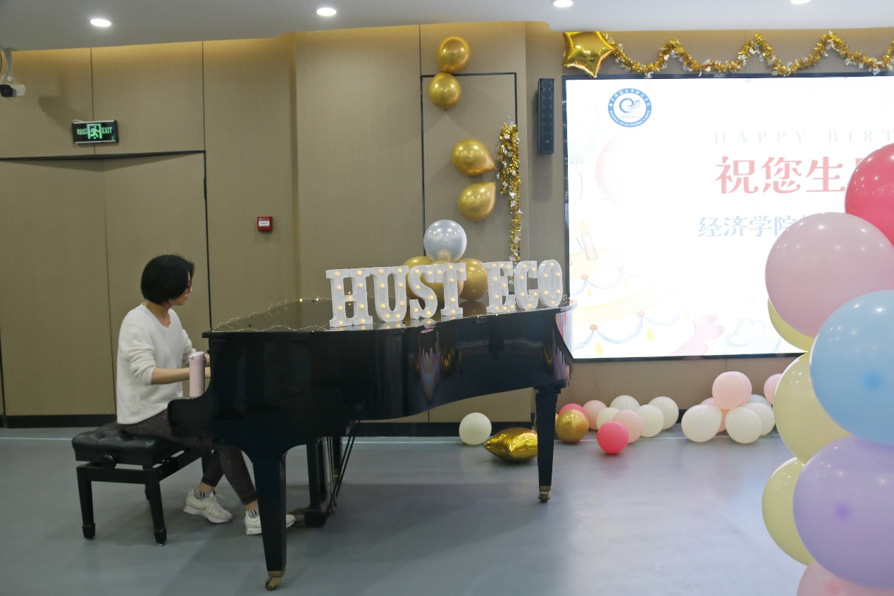 致辞结束后,集体生日会正式开始。学院为这半年来过生日的教职工们精心准备了特别的礼物,以此表达对他们辛勤工作的感谢和对他们生日的热烈庆祝。马诗卉老师给全体老师用钢琴伴奏生日快乐歌曲。在欢乐愉快的生日祝福歌声中,韩民春老师和徐长生老师代表寿星们吹熄了生日蜡烛,“寿星”们纷纷上前共同切蛋糕并合影留念,活动在热烈欢快、其乐融融的氛围中拉开了帷幕。