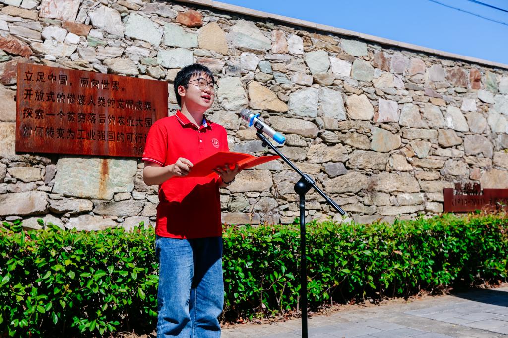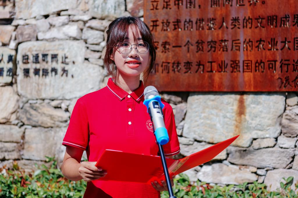 经济2403班万梦琪:金秋九月,党旗飘扬。正值新中国成立七十五周年,我跟随老师同学们来到黄冈红安,和历史开展一场红色对话。探寻故居,张培刚先生经世济民,著宏文以兴国;踏入纪念馆,董必武同志鞠躬尽瘁,遍种神州自由花。“小小红安,人人好汉;铜锣一响,四十八万”,感受这片红色土地,我心潮澎湃。在中国共产党的领导下,中国正逐步建设成社会主义现代化强国。作为时代新青年,我辈更应坚定理想信念,时刻跟随党的指引,心中有党,使命在肩。