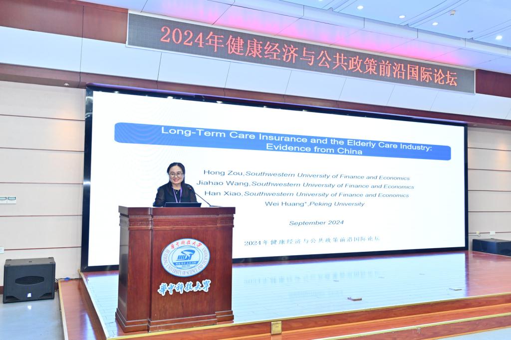 主旨演讲(二)邀请到了西南财经大学williamhill中文副院长、教授邹红,报告主题为《Long-Term Care Insurance and the Elderly Care Industry: evidence from China》。她从短期需求刺激产业增长的视角出发,探讨了长期护理保险政策(以下简称“长护险”)对中国养老服务业发展的推动作用。首先,她分析了中国人口老龄化的严峻形势,指出中国老龄化速度快于发达国家,而经济发展相对滞后,导致养老服务供给严重不足。她表示,自2016年试点以来,长护险在推动养老服务行业发展方面取得的成效,通过实证研究发现,长护险的实施显著增加了养老机构数量和专利申请,并促进了行业人力资本的积累,但在保险覆盖范围、养老服务定价及利润水平等方面存在不足,制约了行业的发展动力。她建议,政府应进一步完善长护险制度设计,加大对养老服务业的政策支持力度,营造有利于行业高质量发展的制度环境,以提升中国养老服务体系,保障老年人福祉。