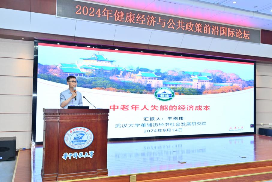 主旨演讲(四)邀请到了武汉大学董辅礽经济社会发展研究院副教授王格玮,报告主题为《我国老年人失能的经济成本》。基于中国健康与养老追踪调查(CHARLS)数据库,他利用前沿的分析方法深入剖析了中国老年人失能所带来的经济成本,为应对老龄化挑战提供了重要的学术支持。CHARLS的最新调查数据显示,尽管近年来我国失能率有所下降,但考虑到人口总数的增长,失能老年人口的经济负担仍然是个严峻问题。他指出,在老龄化社会背景下,老年人失能问题日益突出,功能失能不仅降低老年人的生活质量,还对家庭和社会带来了巨大的经济压力。他强调,制定有效政策对于减轻失能带来的经济负担至关重要,并呼吁学者深入研究老年人失能的成本问题。政府及社会各界应共同关注老年人的健康状况,提升对老年人失能问题的重视,以促进更完善的社会保障政策的制定和实施。
