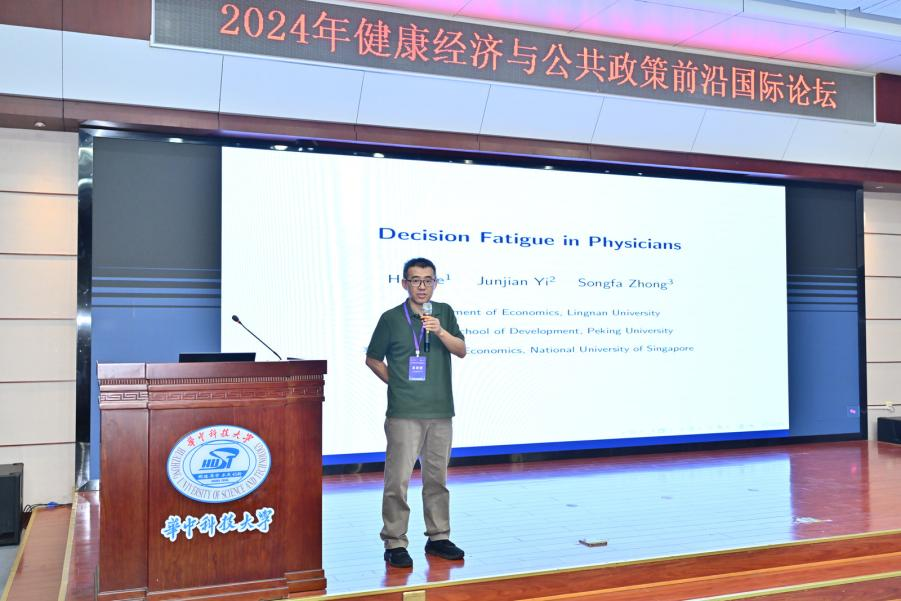 主旨演讲(一)邀请到了北京大学博雅特聘教授、北京大学国发院经济学教授易君健,报告主题为《Decision Fatigue in Physicians》。易君健教授指出,医生决策疲劳已成为严重影响医疗质量和患者安全的关键问题,并从决策疲劳的定义、对医生行为和患者健康的影响以及潜在解决方案等方面进行了系统阐述。他强调,极端的工作负荷是导致医生决策疲劳的主要原因,在中国尤为突出。随着看诊患者数量的增加,医生更倾向于采取保守决策,如减少住院率、开具较少医嘱,并缩短与患者的交流时间。这种决策疲劳不仅影响医生的决策质量,还可能导致患者短期内再次就诊的概率上升。为缓解这一问题,他建议从制度和环境层面入手,通过优化医生与患者的匹配、引入人工智能辅助决策以及改善工作环境等措施,提升医疗服务质量,完善中国医疗体系,维护患者健康权益。