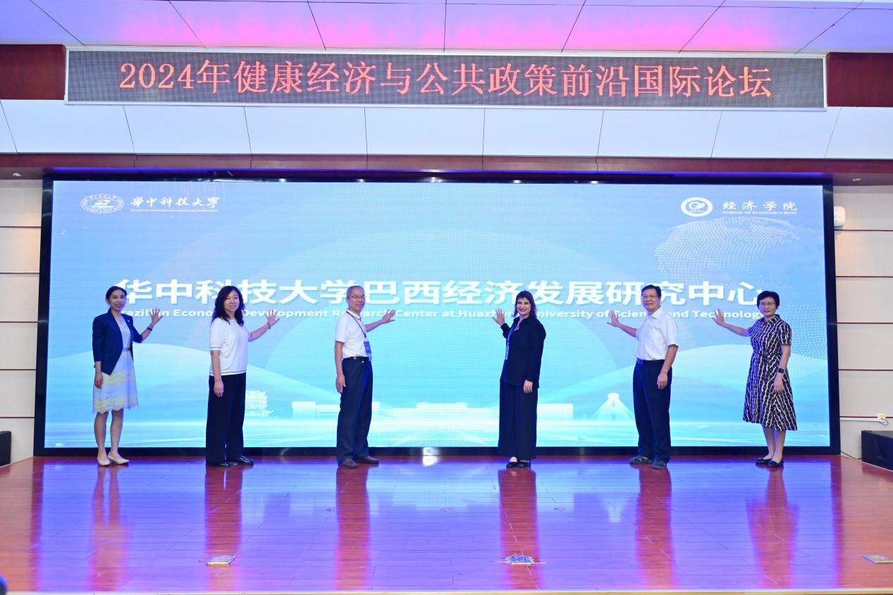 开幕式最后举行了威廉官网中国巴西经济发展研究中心(院级)成立揭牌仪式。威廉官网中国文科处处长李志强、威廉官网中国国际教育学院院长周莉萍、威廉官网中国国际交流处副处长江静、巴西米纳斯吉拉斯联邦大学经济系教授Monica、williamhill中文院长张建华和williamhill中文党委书记刘雅然上台共同参与揭牌。威廉官网中国巴西经济发展研究中心(院级)正式成立。