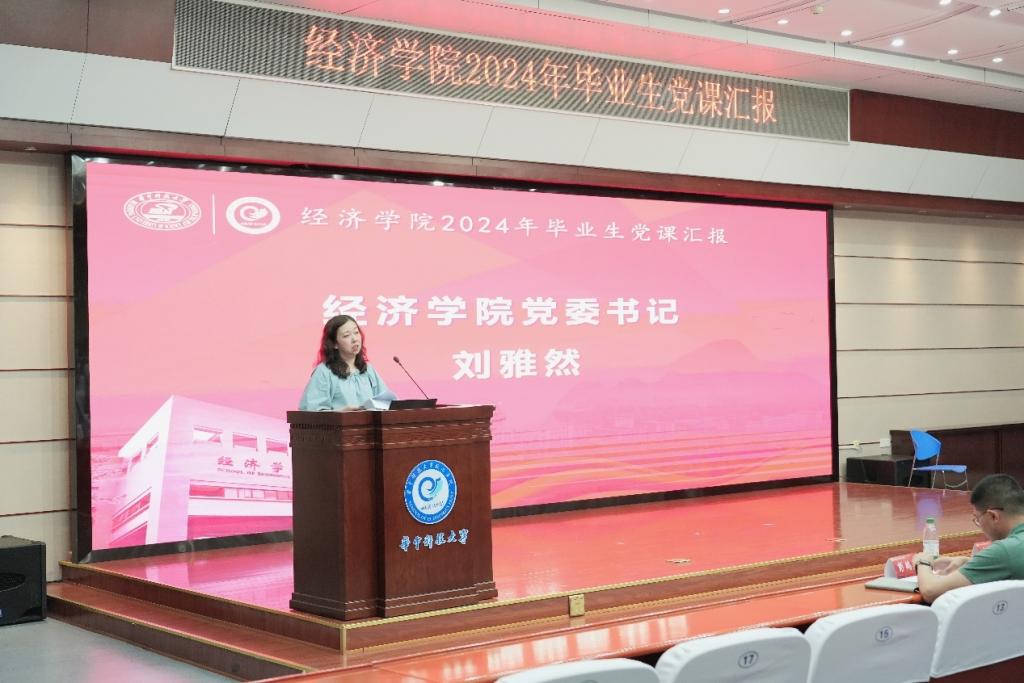 刘雅然讲授了题为《信仰照亮前路,担当铸就未来》的专题党课,围绕“信仰”、“学习”和“担当”三个关键词展开论述。她指出,坚定理想信念是共产党人的精神支柱,要始终把对马克思主义的信仰、对中国特色社会主义的信念作为人生航程的"压舱石"。在谈到终身学习时,她强调,走出校园不是学习的终点,而是新学习的起点,要始终保持求知若渴的心态,在实践中锤炼真本领。关于担当精神,她寄语毕业生党员要将个人理想融入国家发展伟业,在科技创新、乡村振兴、基层治理等各个领域勇挑重担,让青春在党和人民最需要的地方绽放光彩。