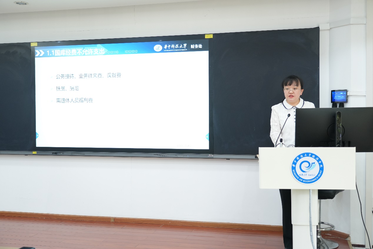 财务处薪酬科长张年红以《严肃财经纪律 加强资金监管》为主题,宣讲财务稽核相关政策。她结合近年高校财务违规典型案例,详细解读了国库经费、科研经费使用中的常见问题。