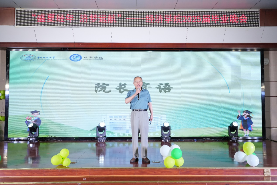 晚会伊始,张建华院长致辞。他首先对2025届毕业生顺利完成学业表示祝贺,充分肯定了同学们在校期间取得的优异成绩。张院长创作了“经纶数载墨盈香,济世豪情淬旭光”的诗句勉励毕业生,强调要始终牢记“明德厚学,经世济民”的院训精神,在新的征程上保持学习热情,将专业知识转化为服务国家发展的实践能力。